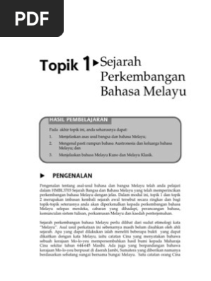 Modul Bm 2 Pdf Topik1x Sejarah Perkembangan Bahasa Melayu Hasil Pembelajaran Pada Akhir Topik Ini Anda Seharusnya Dapat X 1 Menjelaskan Asas Usul Course Hero